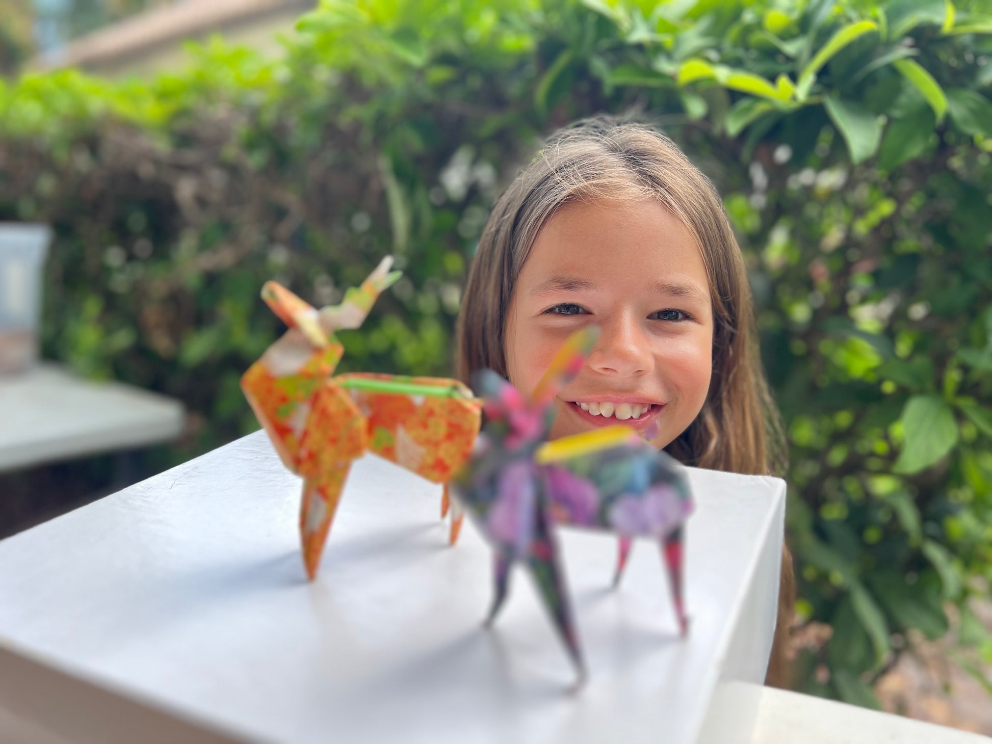 7"-8 1/4" Inch Sheet Paper (folded sculpture will be smaller depending on the fold). Intricate origami deer handcrafted with Nature Chiyogami design.
